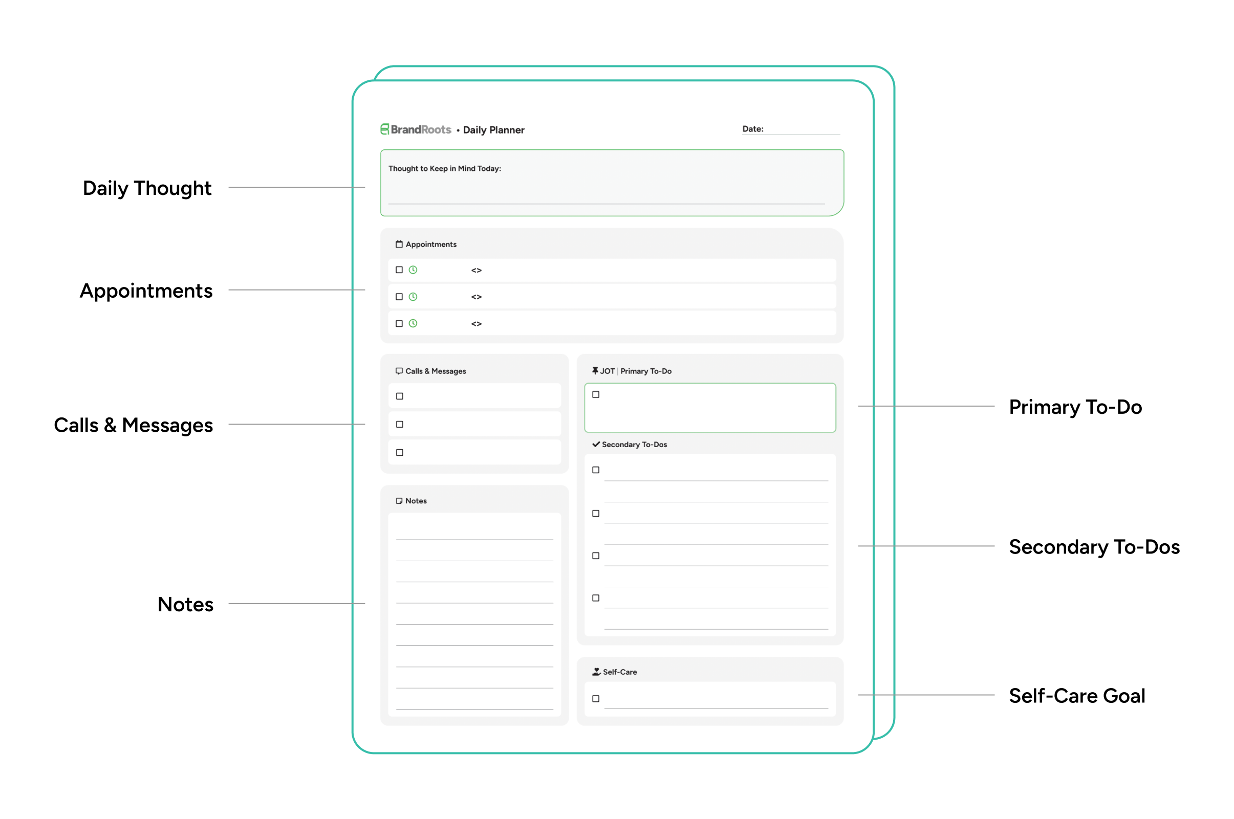 Stay focused and intentional with this printable daily planner. Designed for busy creatives and entrepreneurs, it helps you prioritize top tasks, meetings, messages and make space for self-care—all in one place. Bring clarity to your day so you can work smarter, not harder.